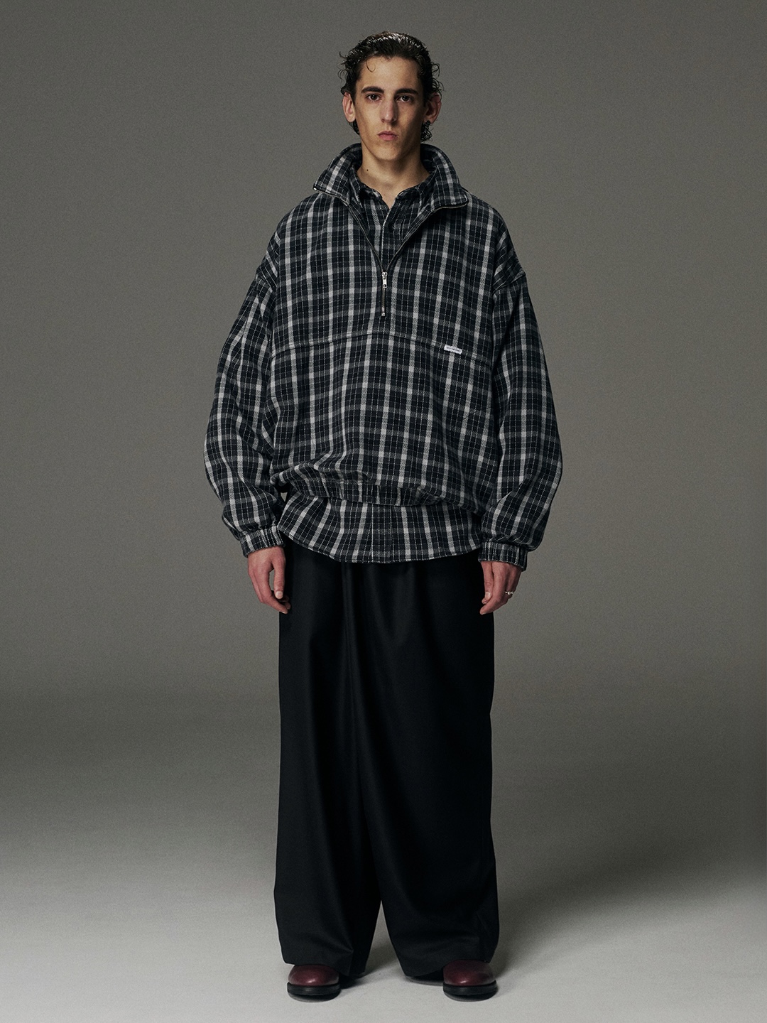 ■ AD Processing Heavy Flannel Check Half Zip Pullover